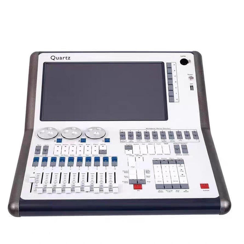 Professional lighting control console featuring a 14.1-inch high-brightness touch screen, Intel dual-core processor, and integrated UPS power supply. Designed for reliable performance in demanding production environments.